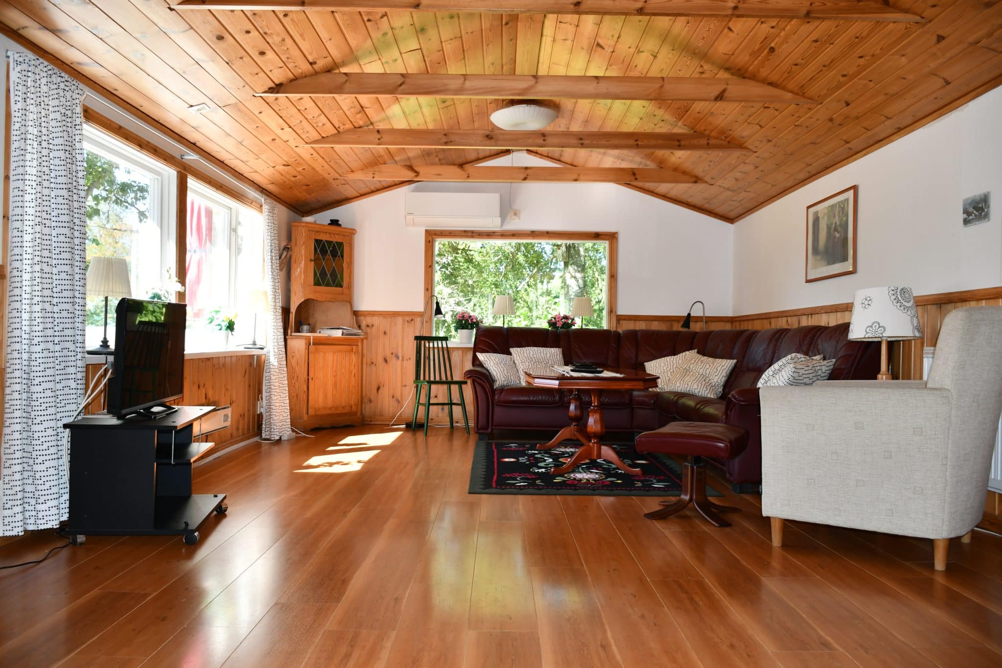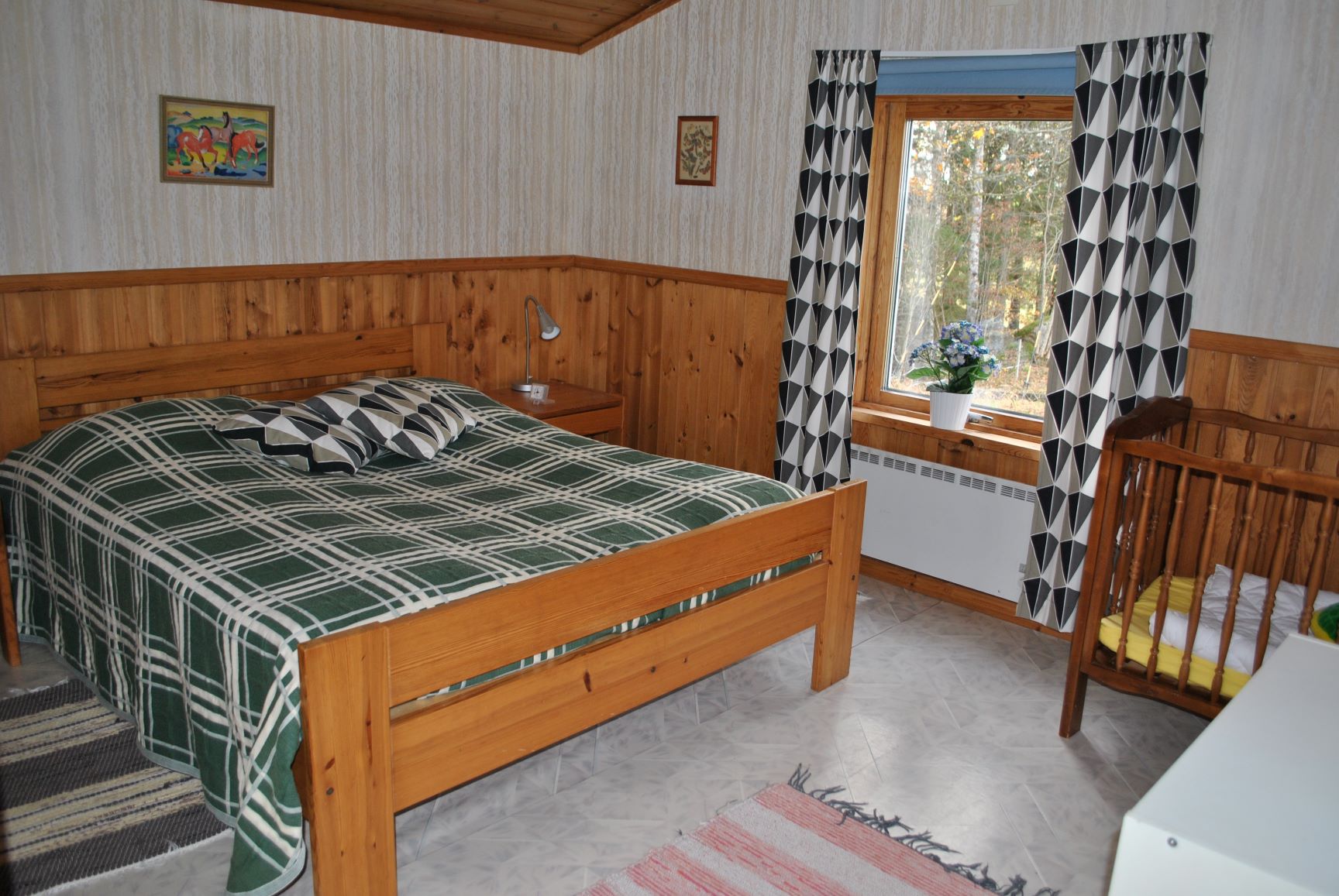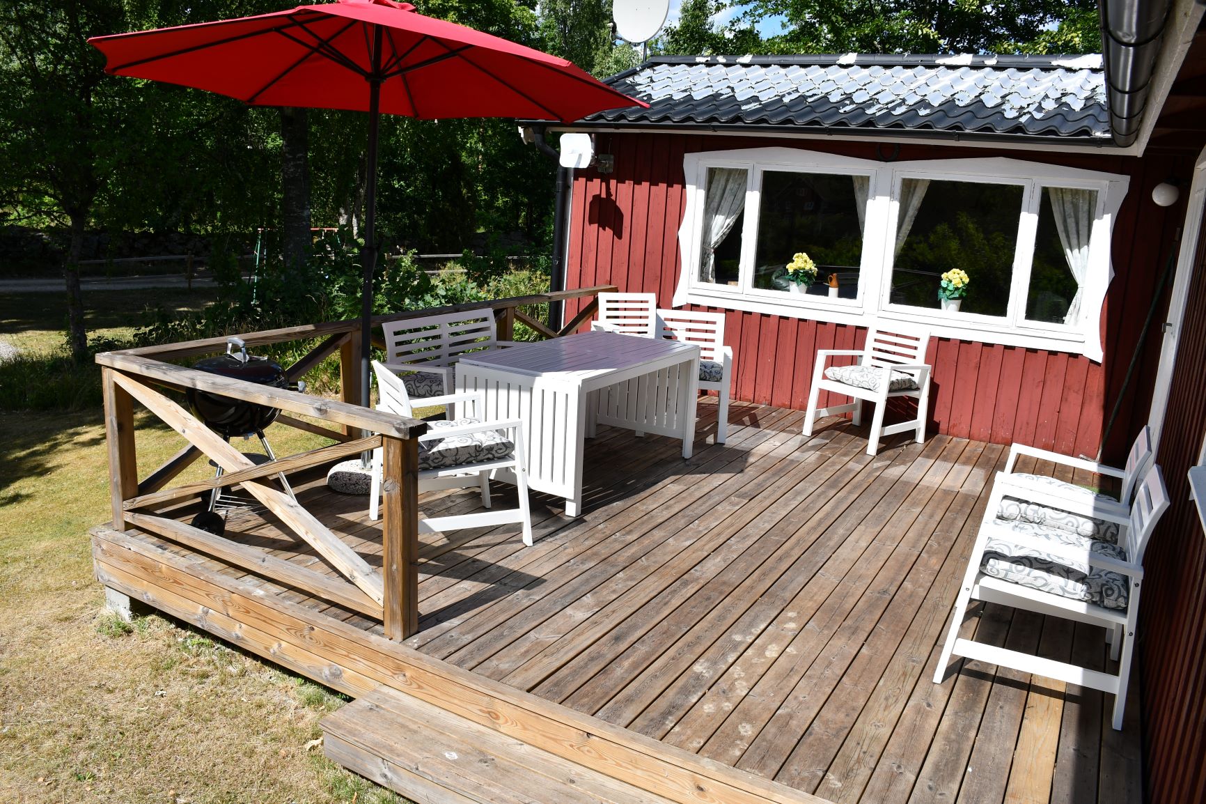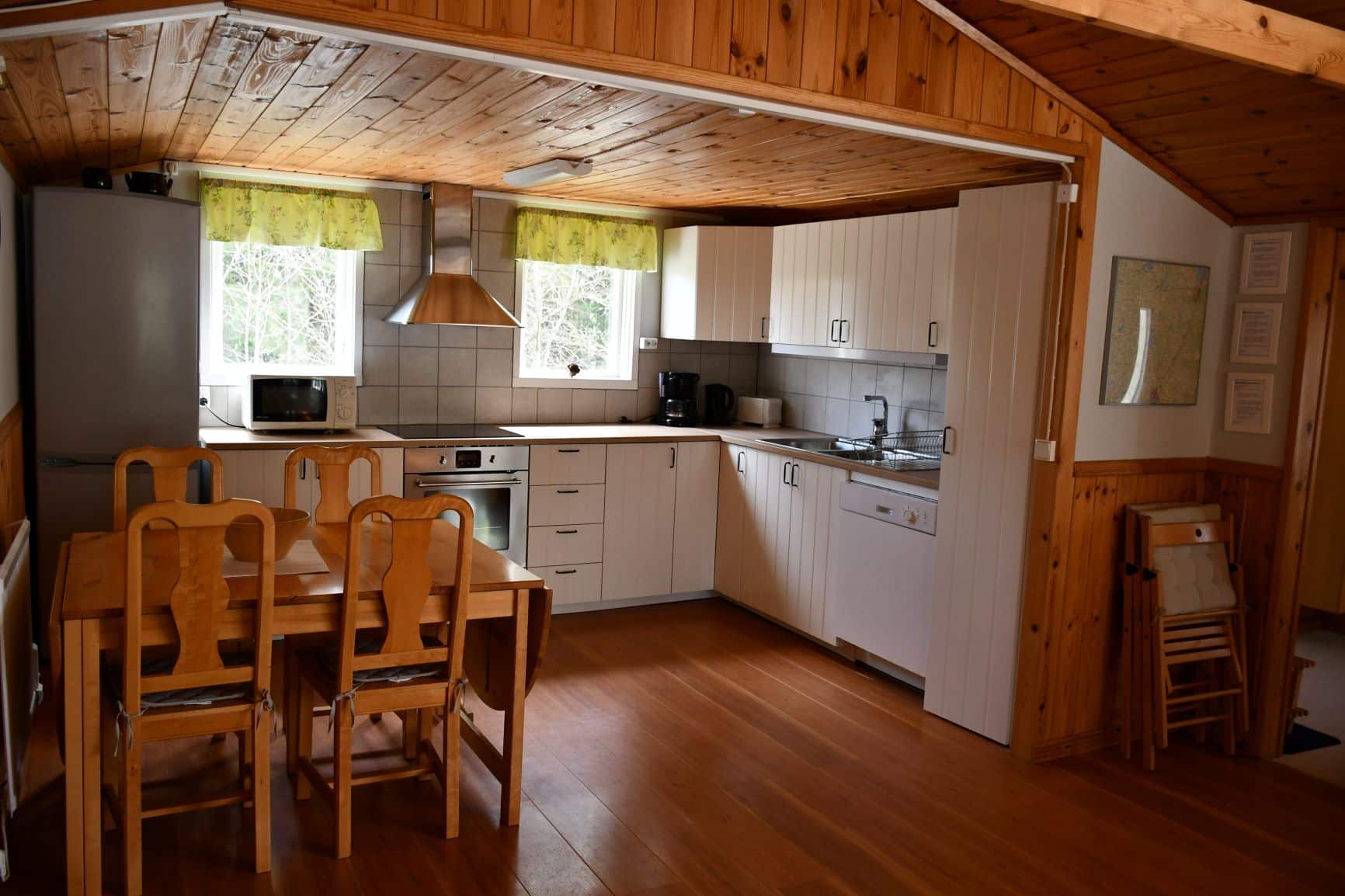 Skogstorpet hat eine Wohnfläche von 95 m², Wohnzimmer mit Fernseher, Küche mit Essbereich, Herd, Geschirrspüler, Mikrowelle und Kühlschrank/Gefrierfach. Wifi. Astra Sat-Anlage mit deutschen Sendern. 4 Schlafzimmer, 7 Betten. WC mit Dusche und Waschmaschine. Holzbalkon mit Gartenmöbeln und Grill.